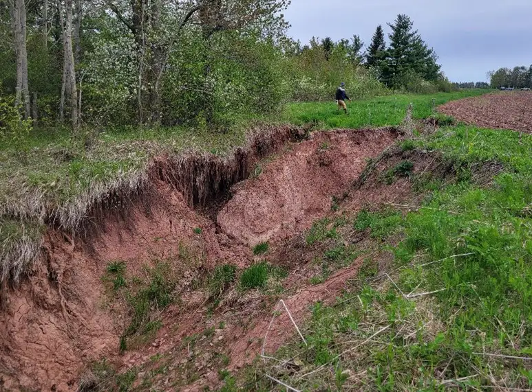 Figure 6. Extreme head-cutting and gully at the end of the farm field.